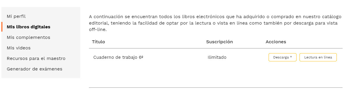 NOTA: Deberás esperar unos pocos minutos para que los títulos asignados a tu código de validación sean mostrados en el listado de Mis libros digitales.